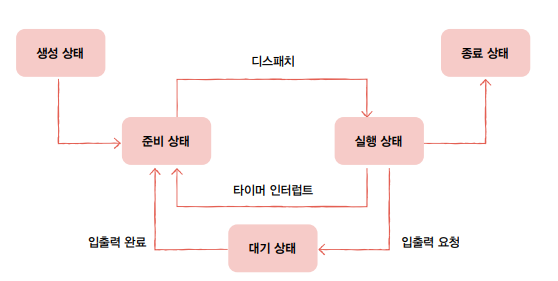 1 - 생성, 2 - 준비, 3 - 실행, 4 - 종료, 5 - 대기