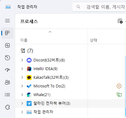 작업관리자를 켜보면 실행중인 프로세스들을 확인할 수 있습니다.
