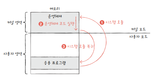 이때 사용자 모드로 실행되는 프로그램이 커널 모드로 전환하려면
