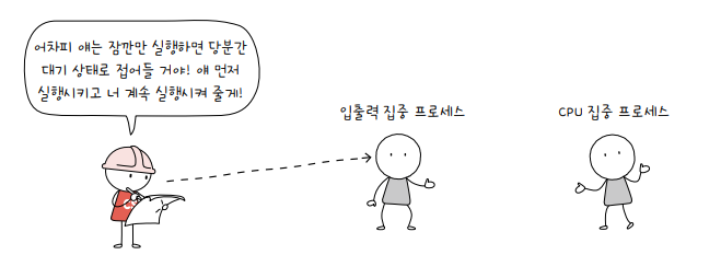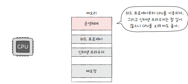 CPU를 먼저 사용할 것인지, 얼마나 오래 사용할 것인지 역시 운영체제가 관리합니다.