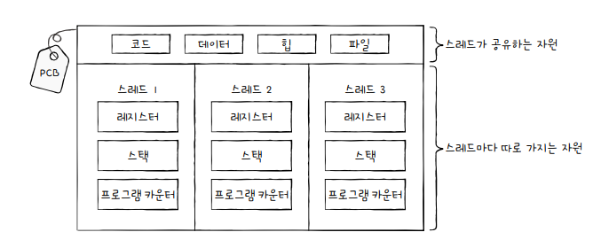 PCB안에는 프로세스가 사용한 프로그램 카운터와 같은 레지스터 값이 담깁니다.