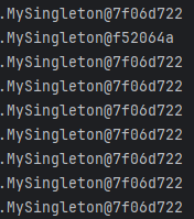 위와 같이 10개의 스레드를 돌려 MySingleton 클래스의 인스턴스를 얻어봤습니다.